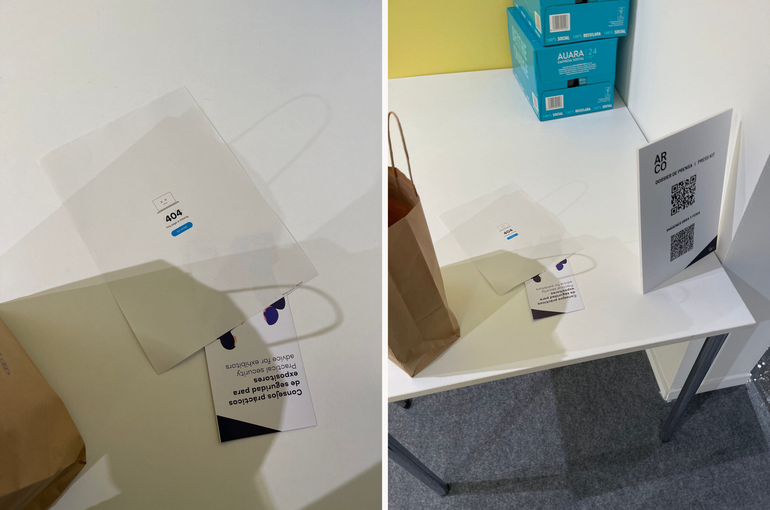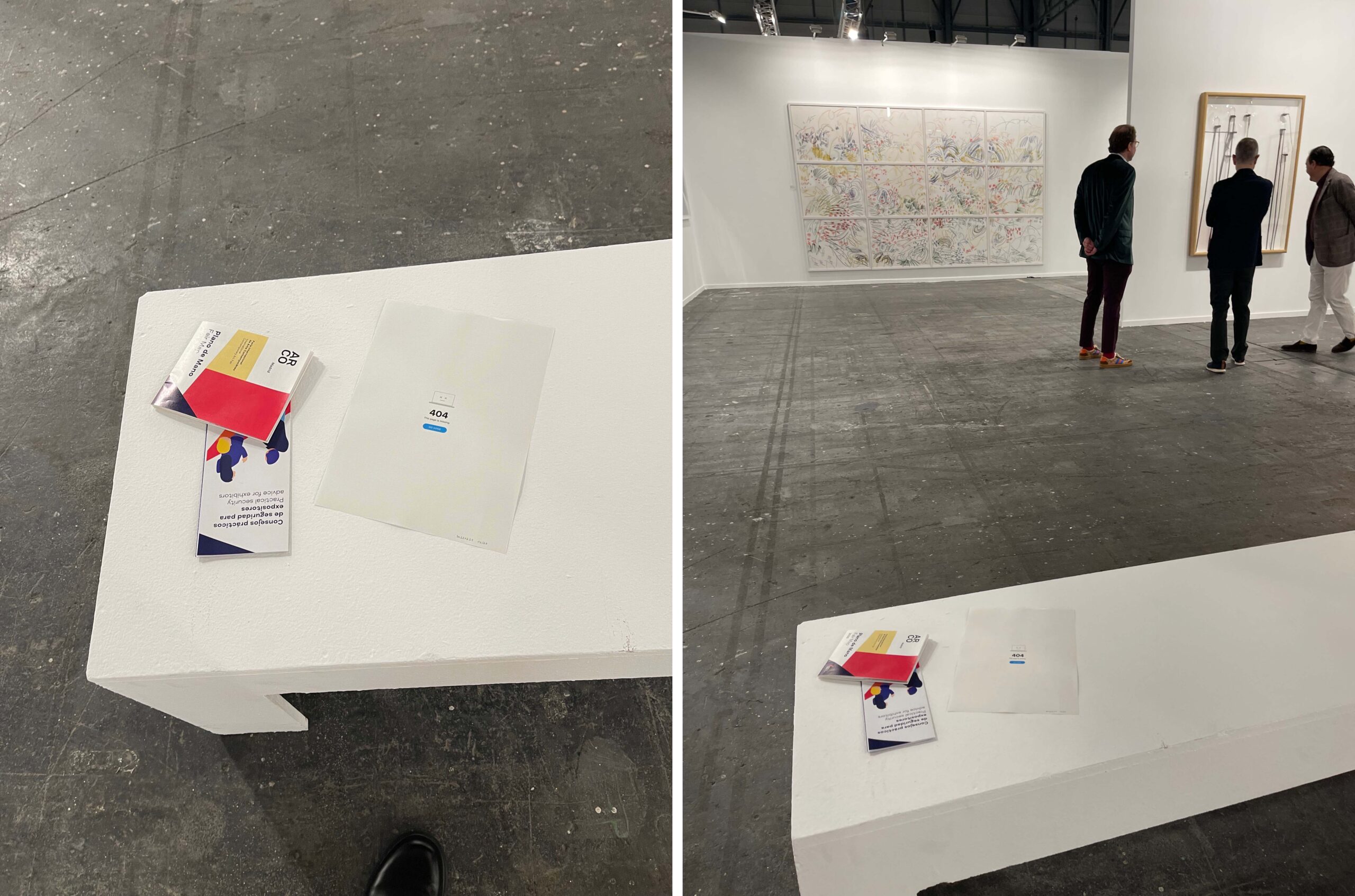 For the interpretation of this occurrence at ARCO’23, I decided to create an edition of 20 + 5 artist’s copies. All of them signed, dated, and numbered in pencil. In this way, people who found them, if they looked closely, could perhaps deduce that what they had in their hands was an ‘artwork,’ although without knowing from whom or why they were deposited there. These individuals could take home an artwork for free (at an art fair that relies on sales), but without anyone telling them if they could do so or if it was an artwork at all. They would have to evaluate everything for themselves, in the moment.